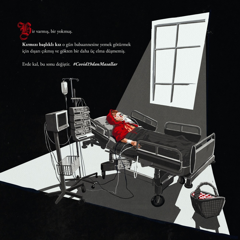 Daha iyi bir etki bırakmak için tabii ki dışarı çıkan, gezen ve sosyal mesafe kuralına uymayan karakterlerin yer aldığı hikayeler seçildi. Rapunzel, Alice ve Kırmızı Başlıklı Kız masalların yer aldığı kampanyada her hikâyenin sonu okuyucuya bırakılıyor. Virüse yakalanma ihtimalini en az seviyeye getirmek ve hikâyenin devamını sağlamak için dışarı çıkma mesajı veriliyor.