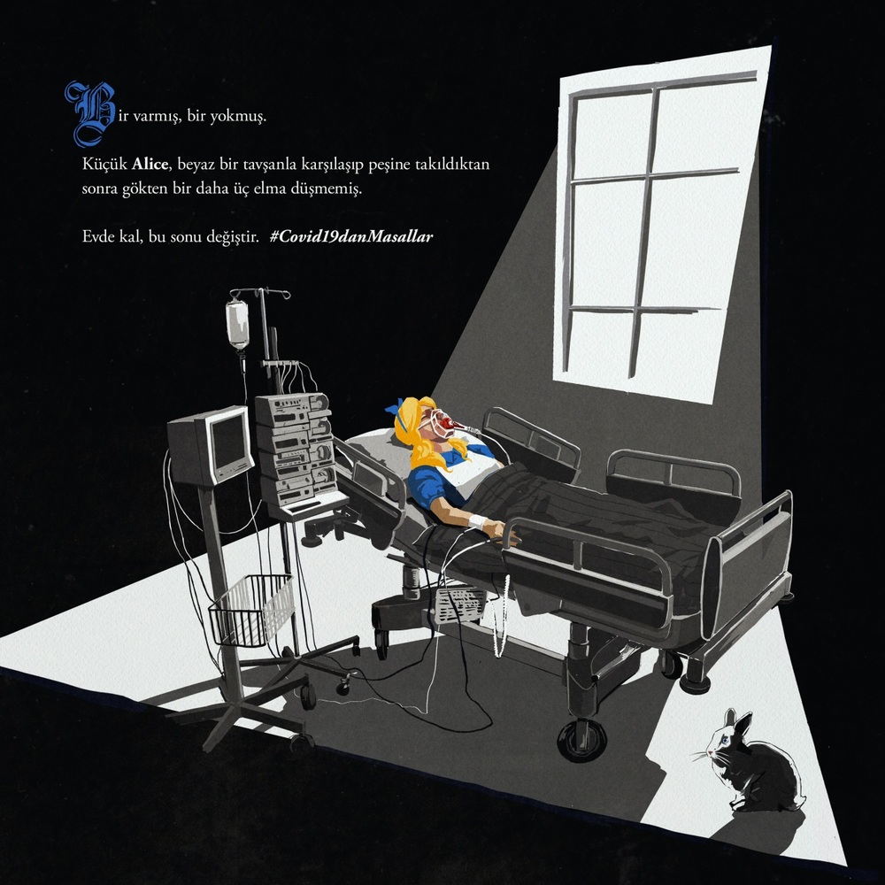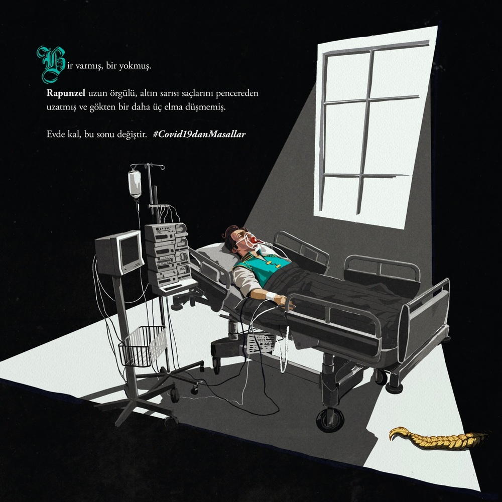 Daha iyi bir etki bırakmak için tabii ki dışarı çıkan, gezen ve sosyal mesafe kuralına uymayan karakterlerin yer aldığı hikayeler seçildi. Rapunzel, Alice ve Kırmızı Başlıklı Kız masalların yer aldığı kampanyada her hikâyenin sonu okuyucuya bırakılıyor. Virüse yakalanma ihtimalini en az seviyeye getirmek ve hikâyenin devamını sağlamak için dışarı çıkma mesajı veriliyor.