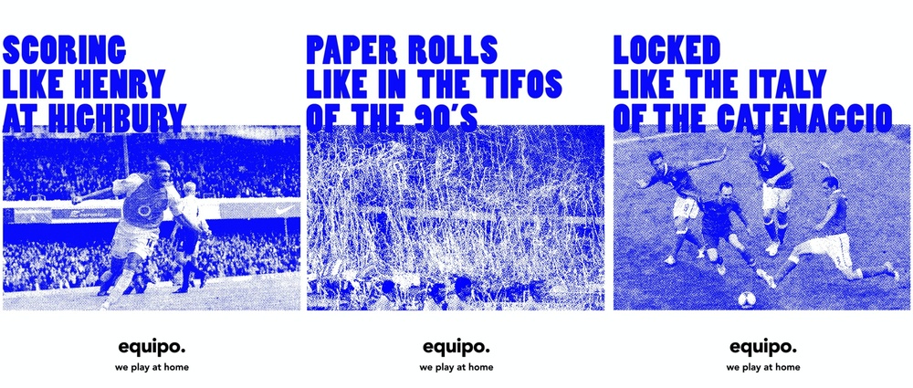 Görsellerin tipografiyle birleştiği İspanya merkezli bir diğer kampanya Equipo imzalı We play at home oldu. Futbolun yerleşmiş terimlerinden ve iç görülerinden yola çıkan ajans üç farklı poster tasarladı. Futbolu bir yaşam tarzı olarak benimseyen ajans futbolun özünü ve kültürünü yakalamayı amaçlayan işler gerçekleştiriyor.