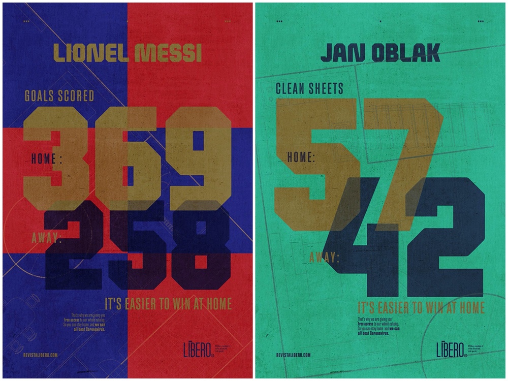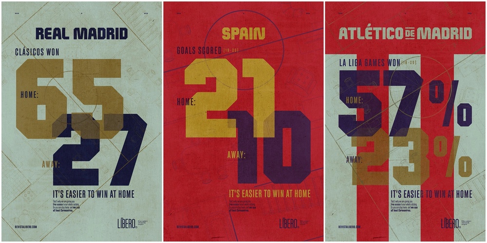 Ev sahibi olmanın avantajlarını istatistiki veriler ile gösteren dergi hazırladıkları afişlerde bu bilgilere yer veriyor. Madrid merkezli DAVID Mad tarafından hazırlanan It’s Easier to Win at Home (Evde Kazanmak Daha Kolay) başlıklı kampanyada takımların ve bazı oyuncuların verileri yer alıyor.