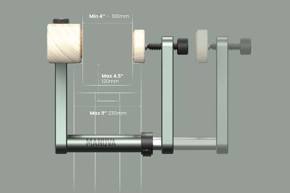Tamamen ayarlanabilir olan Manuva, çeşitli kapı genişliklerine uyacak şekilde yapılmış. Eloksallı alüminyumdan (% 100 geri dönüştürülebilen çevre dostu bir metal) yapılan modüler iskeleti, taşıma ve saklama için kolayca ayrılabiliyor. Aletin diğer kısımları, hafif ve sağlam olmasını sağlayan Kavak ağacından yapılmış. Minimalist bir yaklaşımla şekillendirilen kavak aynı zamanda aleti görsel olarak şık hale getirmiş. Önemli ölçüde daha az suya ihtiyaç duyan ve hızlı büyüyen bir ağaç olduğundan sürdürülebilir bir seçim olduğu vurgulanıyor. Bu malzeme, kullanıcının ellerinde de hasar yaratmıyor. Duvarları korumak için aletin arkasına çevre dostu mantar pedler takılmış. Ürünün ambalajında da geri dönüştürülmüş karton ve kalıplanmış kağıt hamuru kullanılarak sürdürülebilir bir ambalaj tasarımı yaratılmış.