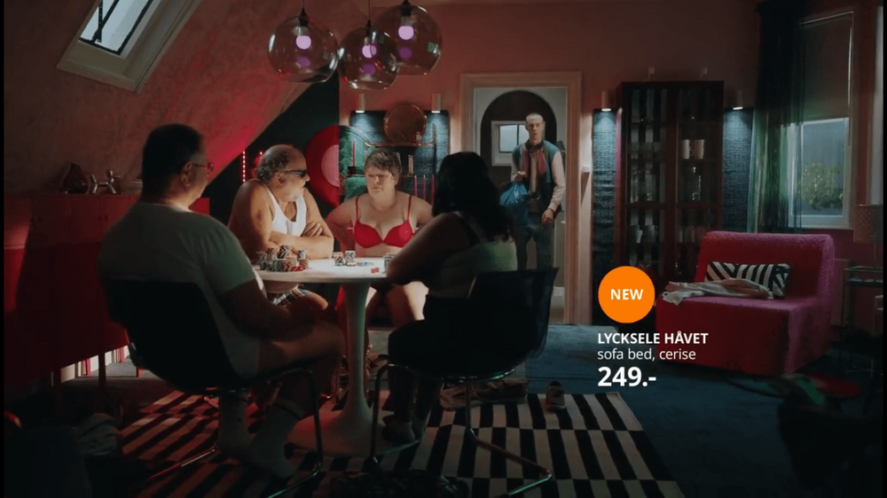 Reklam filmlerinde IKEA ürünlerinden LYCKSELE HÅVET model koltuğun, BROR isimli çalışma tezgahının ve SKARSTA ayarlanabilir çalışma masasının tanıtımı yapılıyor.