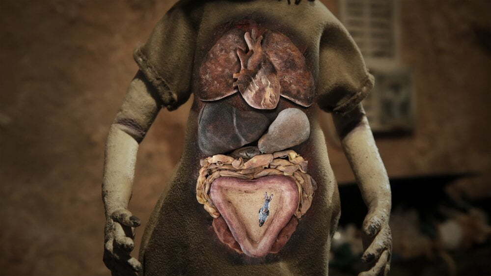 Sokakları çöplerle kaplı bir kentte geçen bu stop-motion animasyonun en etkileyici yanlarından biri de kullanılan malzemeler. Örneğin suyu tasvir etmek için şeffaf plastik kullanılmış. Çöplerle dolu şehir, yemek için avlanmış bir canlının çöpte son bulmak üzere olan yaşamı ve evsiz kadının kaderi arasında paralellikler yakalamak mümkün.