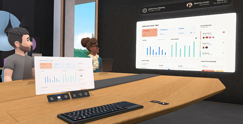 Horizon Workrooms uygulaması ayrıca insanların görseller paylaşmasına ve sunum yapmasına imkan tanıyan sanal bir beyaz tahta içeriyor. Klavyeyi ve fareyi kullanmak için VR ortamında sanal bir klavye oluşturulabiliyor. Yani fiziksel dünyadaki çalışma ekipmanlarını sanal ortama taşımak, gerçekten oturduğunuz masaya uygun bir sanal masa yaratmak mümkün.