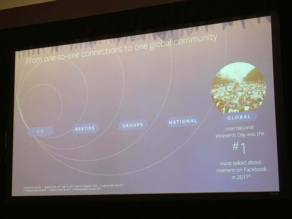 Topluluk kavramı ise 2020’nin temelini oluşturacak son basamak. Yakın çevremiz ve samimi olduklarımızdan küresel tek bir topluluk olmaya kadar her basamakta iletişim yeni kanalları açılıyor. Facebook da iletişimin ana öğesi olduğu için video, metin, görsel, canlı yayın gibi her kanalı üzerinden kurulan iletişimi kucaklıyor. Bir yere ait olma hissini topluluk kavramıyla bütünleştiren Facebook dijital ve fiziksel toplulukların her birinin değerli olduğunu söylüyor.