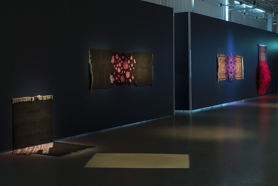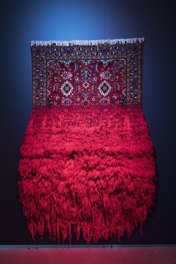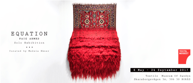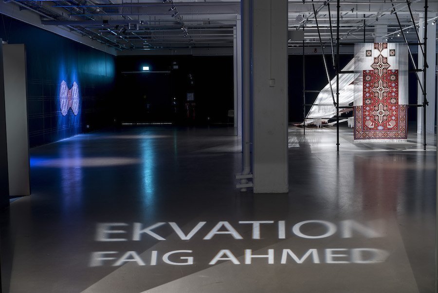 Equation, Azerbaycan doğumlu sanatçı Faig Ahmed’in İskandinav ülkelerindeki ilk sergisi. Dolayısıyla Ahmed mekana özel yerleştirmeler ve daha önce denemediği bozulma efektleri denemiş. Hatta bitmemiş bir halıyla birlikte dokuma tezgahını da sergilediği görülüyor. Müzenin küratörü Medeia Ekner, Faig Ahmed’in sanatının herhangi bir soruya cevap vermediğini, bizzat soruyu teşkil ettiklerini vurguluyor. Sembollerle kaplı oryantal halılar, yalnızca desenleri aracılığıyla bile kolektif bilinçle bağ kuran hikayeler oluşturabiliyor. Budizm ve İslam sembollerini, Avrupa ve İskandinav mitolojisini dahi içerdiklerini görmek mümkün. Ahmed, bu gelenekler, ritüeller ve semboller arasında saygıyla geziniyor. Elbette geçtiğimiz yıl sonbaharda İsveç’e yaptığı ziyaret sırasında İskandinav geleneklerini ve desenlerini keşfetmesi de çalışmalarında önemli rol oynamış. Sergide; sanat, bilim ve metafizik muhteşem üç boyutlu yerleştirmelerle birbirine bağlanmış. Desenler bozulmaya uğratılmış, parçalanmış, fethedilmiş, ele geçirilmiş, yıkılmış ve bu yolla yeni hikayeler yaratılmış.