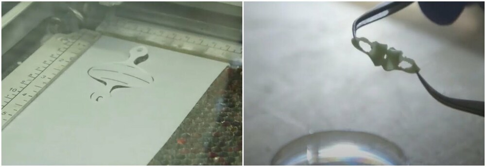İlk olarak esnek malzeme dışardan büküldüğünde nasıl şekil değiştirdiği inceleniyor. Plastik levhalar belirli şekillerde kesilerek materyali hangi noktalardan kesmeleri gerektiği araştırılıyor. Bu kesme noktalarında en önemli adım plastiğin bükülmesi sırasında ürünü kavrayabilecek bir forma erişmesi.