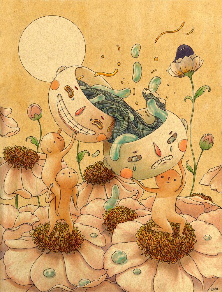 Endüstriyel tasarımcı Felicia Chiao, mesai dışında illüstrasyon çalışmaları yapıyor. Chiao’nun favori malzemeleri Copic Marker’lar ve jel mürekkepli kalemler. Hayao Miyazaki filmlerindeki sembolik yaratıkları andıran figürler çiziyor ve her kompozisyonda da benzer yaratıklar tekrar tekrar karşımıza çıkıyor. Yoğun bir duygusallık içeren kompozisyonlarda dengeyi, şeker kavanozundaki sevimli kurtçuk gibi neşeli detaylarla sağlıyor. Düşünmek ve kurgulamak yerine değil bilinçaltından çıkan doğaçlama figürleri tasvir ediyor.