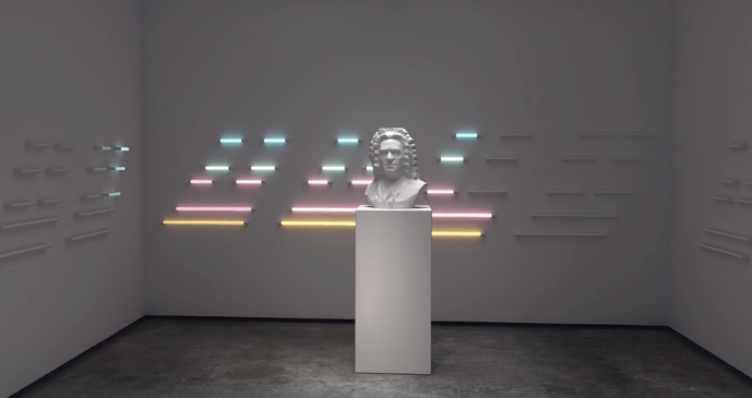Sanatçı Alan Warburton, J.S. Bach’ın “The Well-Tempered Clavier”ından iki eserini bir galerinin bembeyaz duvarlarına, zeminine, tavanına, merdivenlerine ve hatta otoparkına ve korkuluklarına yerleştiği floresan ampüllerle görsel olarak yorumlamış.