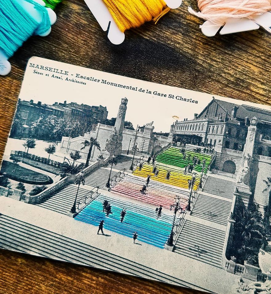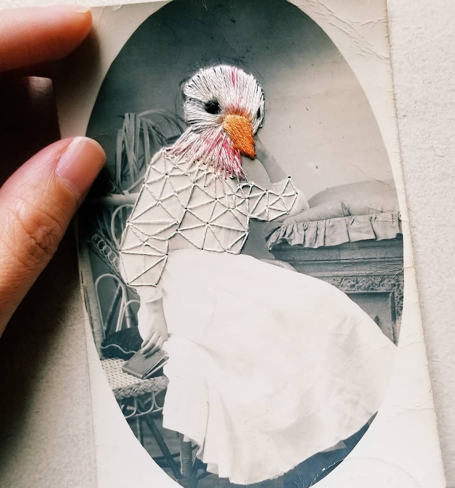 Nakışla fotoğraf üzerine müdahale, son yıllarda sıklıkla karşılaşmaya başladığımız bir yöntem. Her sanatçı kendi ip paletini, kendi özgün desenlerini ve kendi yüzeyini (fotoğraf, poster, kartpostal, çizim vb) seçerek kendini diğer nakış sanatçılarından ayrıştırıyor elbette. Francesca Colussi Cramer, eski fotoğraflar ve kartpostallar üzerinde hem kanaviçe hem de nakış uygulayarak dikkat çekmişti. Juana Gómez anatomik öğeleri nakışla vurgulamış, Joana Choumali ise Fildişi Sahili’nde terör saldırısı sonrası çektiği fotoğrafları nakışla işlemişti. Şimdi de Forgotten Photos serisiyle Han Cao’nun nakışlı ve kanaviçeli yüzeyleri var karşımızda.