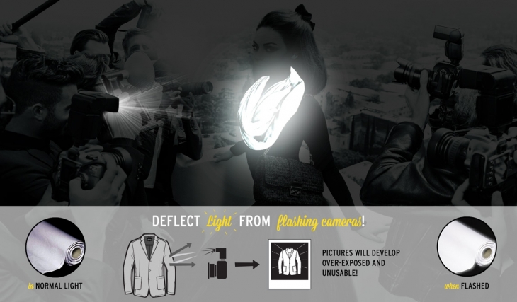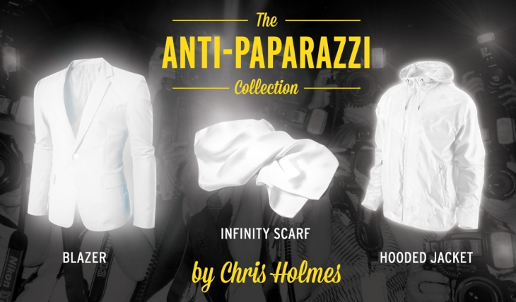 Chris Holmes ve Aaron Koblin tarafından geliştirilen moda projesi dahilinde tasarlanan ceket, atkı ve kapüşonlu hırka; üzerine yansıtan flaşı daha da parlak yansıtarak başka hiçbir şeyin görünmemesini sağlıyor. Anti-Paparazzi Collection fikri, doğal olarak ışığa karşı patlayan ve fotoğrafın bir kısmını işlevsiz hale getiren kıyafetlerden ortaya çıkmış. Özel hayatı gizlemek hatta kimi zaman internet mîm’i olmayı önleyebilecek güce sahip bu koleksiyon.