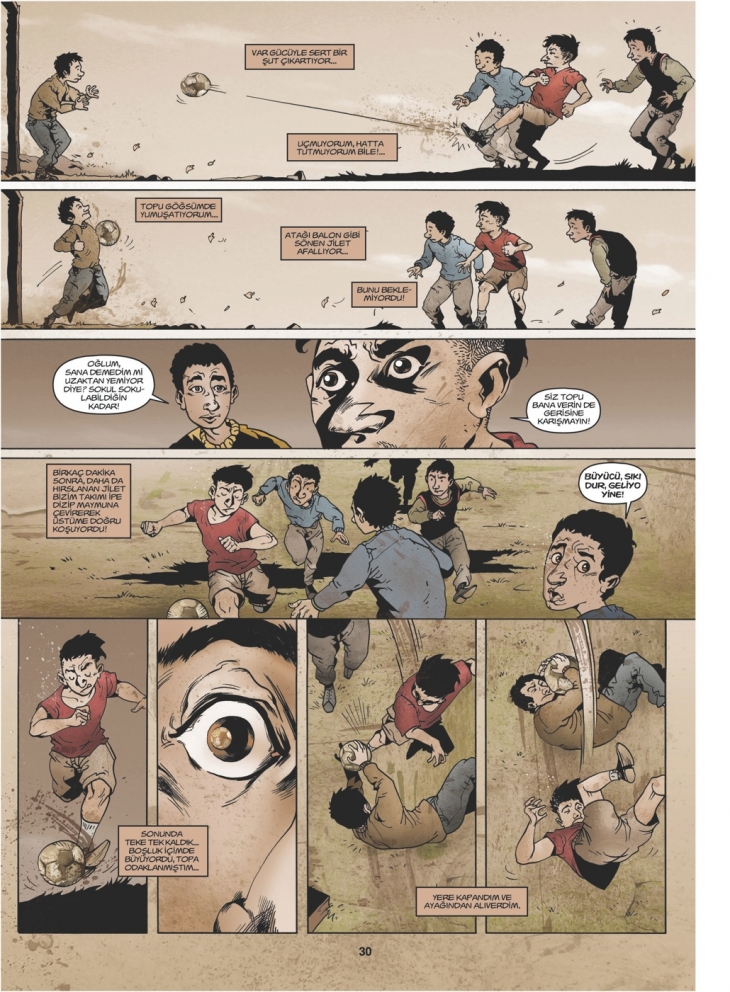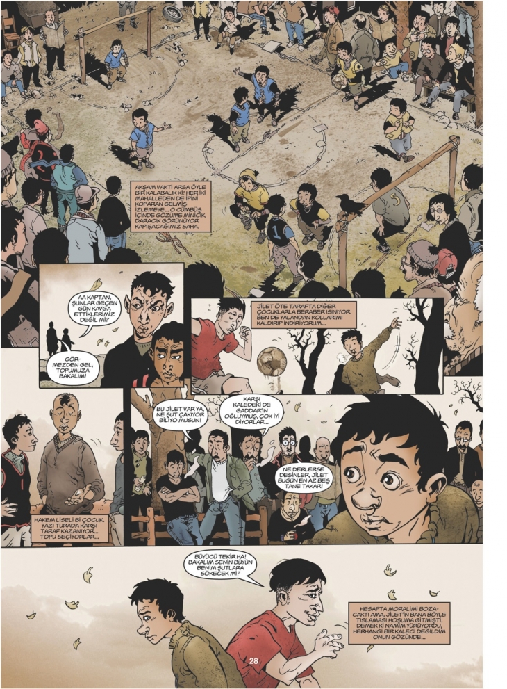 Bu çizgi romanda merkezde futbol var ve ilham alınan eser de bir roman: Bülent Sağman’ın Büyücü Tekir adlı eseri. Hikayede yakın geçmişin İstanbul’u, mahalle kültürü, sokak futbolu sahnelerinde bir yıldızın parlayışı ve bir profesyonel futbolcunun düşüşü eş zamanlı anlatılıyor.