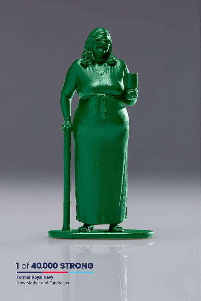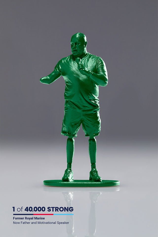 McCann London, Birleşik Krallık’ın yardım kurumu Help for Heroes için tasarladığı 40 bin küçük figür ile çarpıcı bir istatistiğe dikkat çekiyor. Son 20 yılda 40 bin kişi yaralanma nedeniyle İngiliz ordusundan ayrılmak durumunda kaldı ve bu sayı her geçen gün artıyor. Ayrılanların birçoğu sivil hayata tutunmak için oldukça mücadele ederken kaybettikleri uzuvları ve psikolojik yıpranmalar sebebiyle oldukça zorlanıyor. Help for Heroes tarafından 19-30 Ağustos tarihleri arasında yapılan çevrimiçi bir ankete göre görev dönüşü boşluğa düşen askerlerin yüzde 70’i sivil hayata geçişlerinin olumsuz bir deneyim olduğunu ifade ediyor.