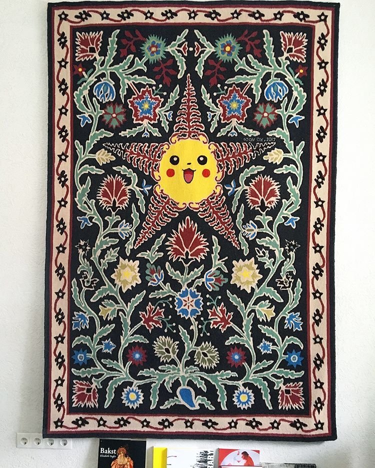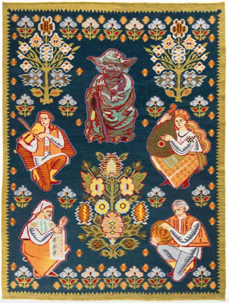 Okasana Levchenya yapımı halıların her biri birbirinden nefis. Çalışmaları arasında ise Pokémon ve Star Wars motifli fantastik halılar dikkat çekiyor. Hatta bir tane Simpsons halısı da var. Pikachu ve Yoda gibi çağımızın kahramanları, yüzyıllar öncesine ait elle dokuma tekniğiyle yaratılmış halılarda, çiçekli ve geometrik süslemelerin arasından bizlere bakıyor.