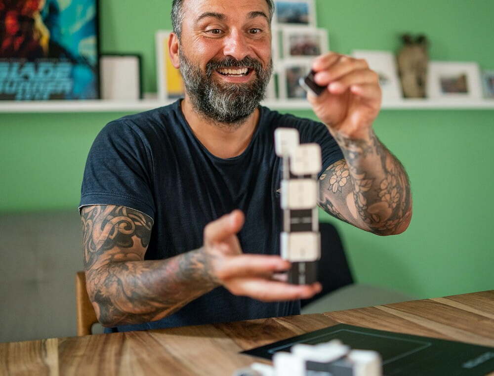 Yaratıcı gücünüzü dinlendirirken GEMJI ile satranç, tavla, go, dama ve Jenga gibi klasik oyunları oynayabilirsiniz. GEMJI’nin bu çok işlevliliği, özellikle seyahatler için oldukça avantajlı. Parçaların manyetik olması, hareket halindeki bir aracın içinde oynanabilmesine imkan tanıyor ve kaybolma riskini de azaltıyor. Her bir sette 70 adet siyah-beyaz kart/karo bulunuyor. Gelecekteki güncellemelerle daha birçok oyunun oynanmasına imkan verecek kendi mobil uygulamasına da sahip.