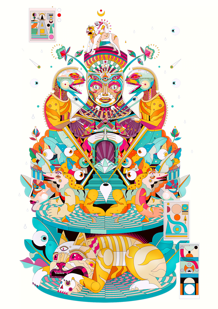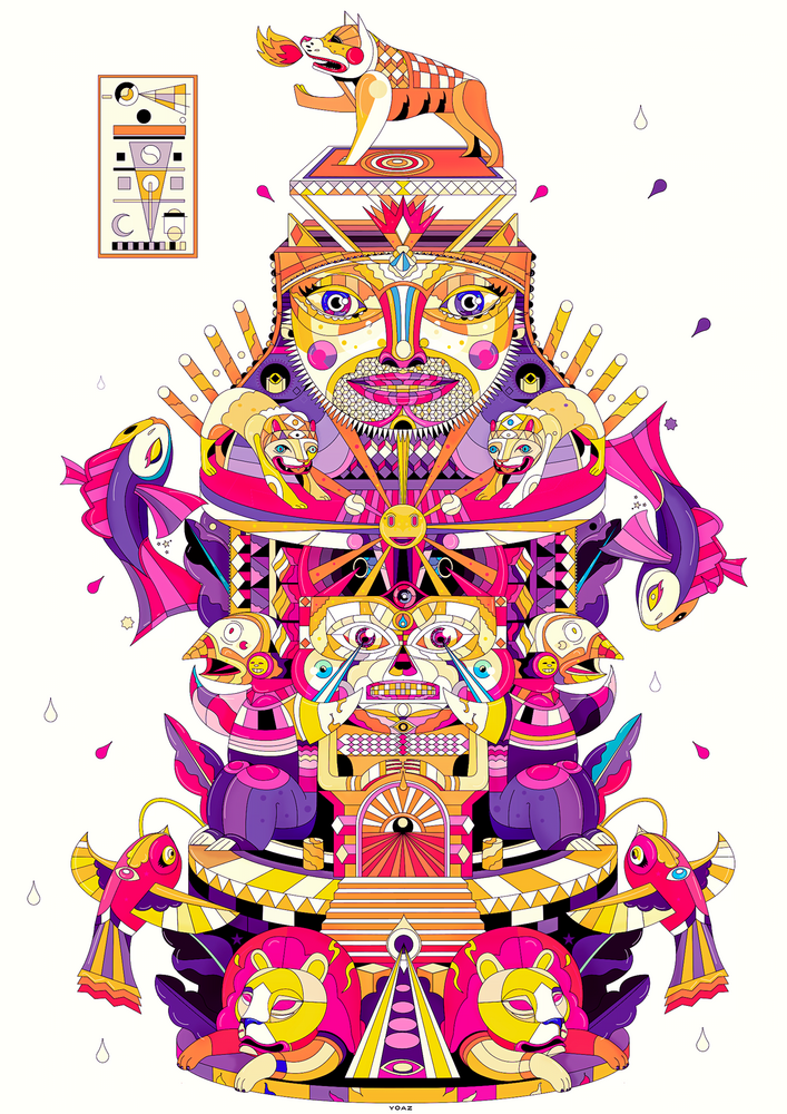 Parisli grafik tasarımcı ve illüstratör YoAz, kendine özgü geometrik bir stilde çalışarak, karmaşık vektör görüntüleri yaratıyor. Yeni illüstrasyon serisi Totems de bu yaklaşımla ürettiği en çarpıcı projelerden biri.