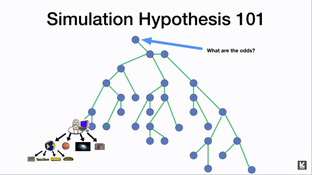 SXSW 2019’daki konuşmasına simülasyon hipotezi 101 başlığıyla başladı. Hipotez, evrenin bir bilgisayar simülasyonu olduğunu ve ileri düzey yaşam formlarının evreni eğlence kaynağı olarak kullandığını varsayıyor. Ateist olarak yetiştiğini söyleyen George Hotz, Tanrı’yı bir bilgisayar programcısı olarak düşünmek mümkün diyor. Bugün gerçekleşen kötü olayların bütünü; cebinizden paranızın düşmesi, birisinin ölmesi, bütün olanların hepsi doğanın kanunu olarak adlandırılır. Simülasyonda bulunan verilerin bütününe doğanın kanunu diyebiliriz. Belki bu simülasyonun verilerinin olduğu merkezi bulup değiştiremeyiz ancak işleyen simülasyonu kırıp doğanın sistemini değiştirmek mümkün. Önemli olan bunun farkına varabilmek.