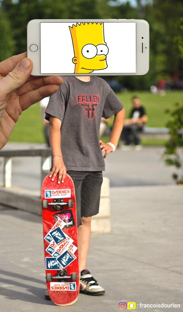 Dourlen Instagram hesabıyla geçtiğimiz yıldan bu yana oldukça dikkat çekiyor. Çalışmaları, iPhone ekranı sayesinde, gerçek yaşamdaki canlılarla veya nesnelerle gerçekleştirilen sade kolajlardan oluşuyor. Dourlen’in çalışmalarına baktığımızda iki temel yaklaşım görüyoruz. Bu yaklaşımlardan biri, çiçek – Simpsons kolajlarında olduğu gibi, alakasız olan iki şey arasında bağlantı kurmak -ki ben bu yaklaşımı daha çok beğendim. Bir diğeri de direkt olarak bir objenin ya da canlının bir bölümünü aynı obje ya da canlının Simpsons versiyonuyla tamamlamak. Örnek vermek gerekirse McDonald’s maskotu Ronald McDonald’ın gövdesi üzerine Simpsons’daki Palyaço Krusty’nin kafasını oturttuğu kolaj ve Trump’ın gövdesini Simpsons’daki Trump ile tamamladığı çalışması bu direkt yaklaşımın ürünü.