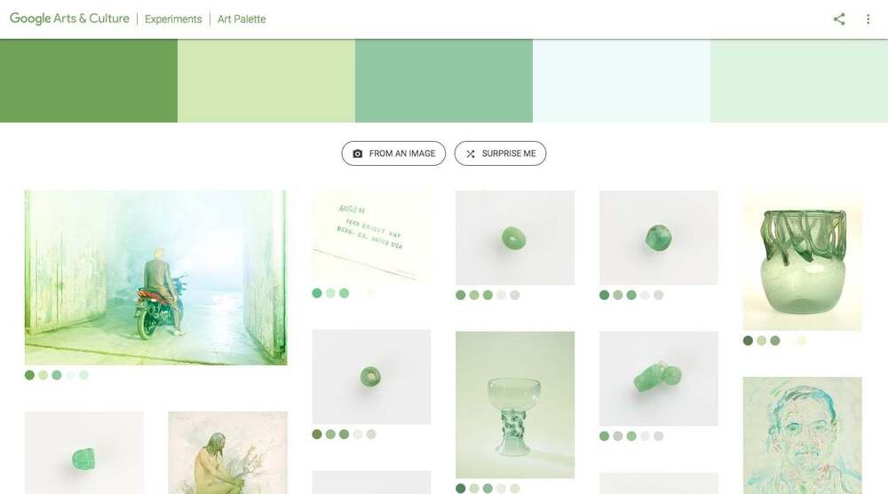 Şimdi de Google Arts & Culture uygulaması yine bizlerin hoşuna gidecek, oyun gibi bir özellikle karşımızda. Arts & Culture üzerinden ulaşacağınız özellik “Color Palette” ile isterseniz kendi renk paletlerinizi aratabiliyorsunuz isterseniz de “şaşırt beni” butonuyla rastgele bir renk paleti oluşturup o tonları kullanan sanat eserlerini görebiliyorsunuz.