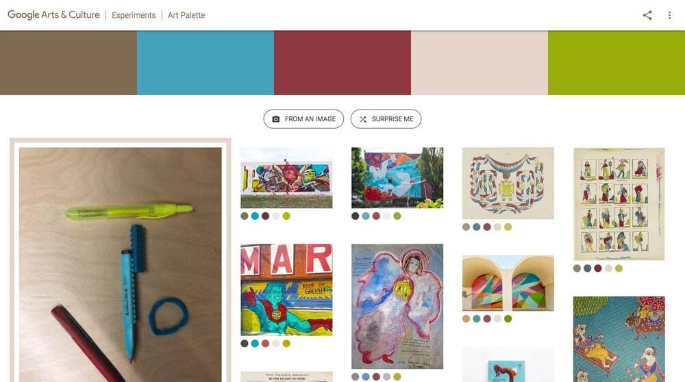 Özelliğin bir güzelliği de sadece bu renk paletlerinin kullanıldığı tabloları, sanat eserlerini ve tasarımları öğrenmek değil. Aslında bir yandan da tasarımcılar için güzel bir renk uyum bilgisi deneyimleme ve öğrenme alanı da yaratıyor. Diyelim sokakta yürürken çok güzel renklerin olduğu bir yeri gördünüz ve bunun bir fotoğrafını çektiniz. Bu fotoğrafı da Arts & Culture Color Palette özelliğinden faydalanarak renk paletlerine ayırabiliyorsunuz. Aslında bu sokaklarda ilham bulan tasarımcılar için güzel bir özellik çünkü tasarımcının kendisi bu renkleri analiz edeceğine onun yerine öğrenmeye hevesli bir makine yani algoritma bunu yapıyor.
