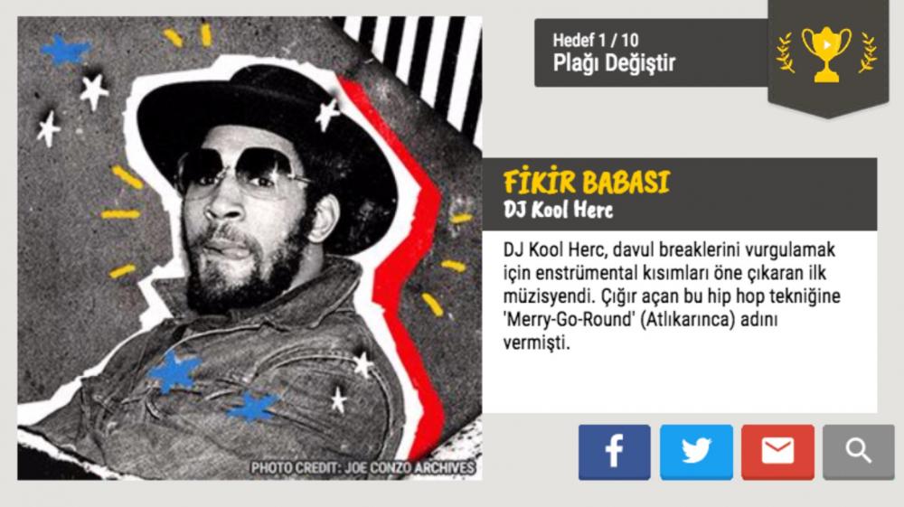 Google da hazırladığı iki turntable’lı basit bir controller ile Hip Hop’ın doğuşunda iz bırakan parçaları birlikte çalabiliyor ve bir müzik türünün doğuşunda büyük rol oynamış isimleri hakkında bilgi sahibi olabiliyoruz. Günümüzde Hip Hop’ın geldiği noktaya bakınca da 44 yıl ne kadar dolu dolu geçmiş, değil mi?