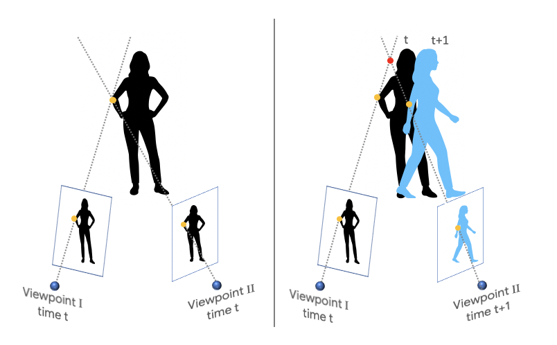 Derinlik tahmini için tek görüntü üzerinden yöntemler geliştirilmiş durumda. Araştırmacılar birden fazla kareden gelen bilgileri dikkate alarak sonuçları daha verimli hale getirebileceklerini söylüyor. Örneğin iki farklı bakış açısı arasındaki statik nesnelerin değişen konumu derinlik ipuçları sağlıyor. Bu tür bilgilerden faydalanmak için iki kare arasındaki 2B optik akışı hesaplanıyor. Bu akış hem sahnenin derinliğine hem de kameranın göreceli konumuna bağlı. Ancak kameranın konumu bilindiği için denklem dışında kalabiliyor. Böylelikle derinlik haritasına ulaşılıyor.