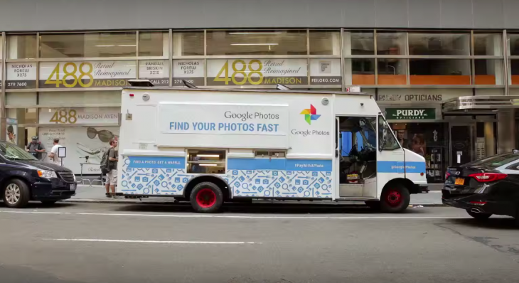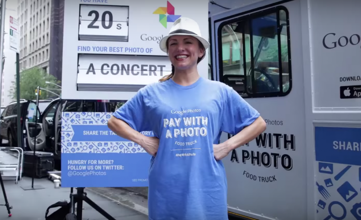 Google, Google Photos uygulamasının aranan fotoğrafları saniyeler içinde bulabilecek bir yapısı olduğunu öne çıkartmak için, ödemelerin fotoğraflarla yapıldığı yiyecek kamyonuyla yollara düşmüş. “Google Photos Food Truck” yemek kamyonunda katılımcılar, hızlı fotoğraf aramalarıyla ödeme yapıyorlar.