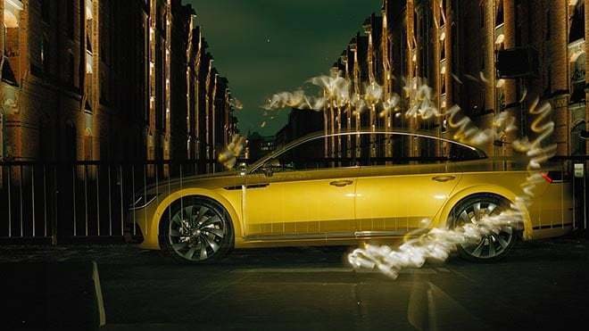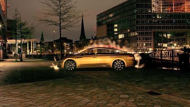 Alman reklam ajansı Grabarz & Partner, fotoğrafçını ışıkla adeta çizdiği fotoğrafik tabloların Volkswagen’in yeni modeli Arteon için kullanmaya karar verdiğinde ortaya çıkan sonuç tek kelimeyle nefis. Eckert’in ilk otomobil çekimi olan çalışmalar; sadece kendisi tarafından yaratabilecek bir etki yapıyor. Çekilen 10 karede parlak renkler, patlamalar, uzun pozlamalar ve çift pozlamalar ile yaratılan ışık oyunları Arteon’un yenilikçi tasarımına vurgular yaparken, otomobil adeta ışığın içinde süzülüyor.