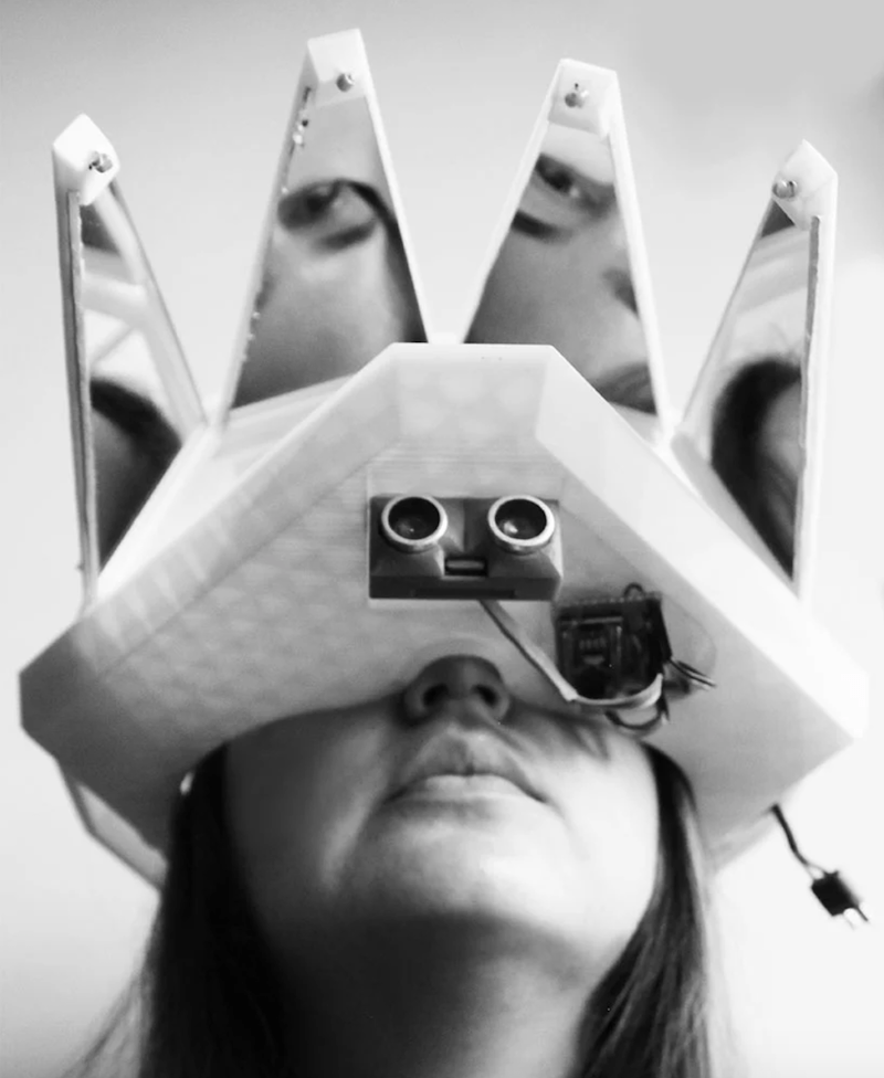 Aynalı sistem, hareket sensörü tarafından etkinleştirilen bir motora bağlı. Aynalar kaleydoskop efekti oluşturmak için bir üçgen oluşturuyor. Birine yaklaştığınızda hareket sensörü, aynaları açan motoru tetikliyor ve kaleydoskop efekti devreden çıkıyor.