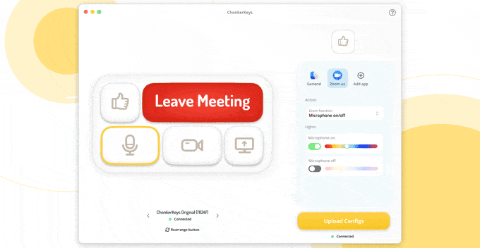 Orijinal ve Max olmak üzere iki farklı tasarımı alan mekanik tuş takımının birinde 5 tuş diğerinde ise 9 tuş bulunuyor. Tuş takımları kullanıcının tercihine göre değiştirilebiliyor. Standart modelde mikrofon ve kamera açma/kapama tuşları, beğendim emojisi, ekran paylaşımı tuşu ve kırmızı bir “toplantıdan ayrıl” tuşu bulunuyor. Gelişmiş seçenekte ise kayıt alma, ileri sarma, duraklat/oynat ve yorum tuşları da ekleniyor. Bu sayede Netflix ya da YouTube gibi yayın platformlarındaki videoları da tek tuşla kontrol etmek mümkün.
