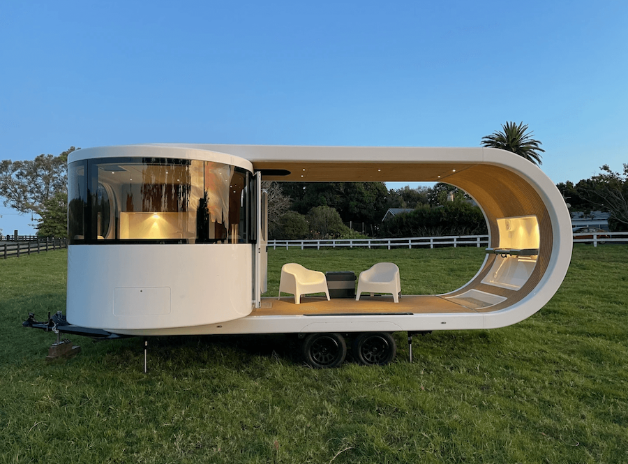 Şık ve fütürist bir döner tasarıma sahip olan Romotow, belki de piyasadaki en orijinal römork karavanlardan biri. Döndürülerek açıldığında, dört ila altı kişilik yataklı ana kabinin yanında konumlanan üstü kapalı bir verandaya sahip.