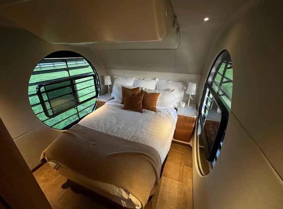 Romotow’un geniş alan vaadi yalnızca verandasıyla sınırlı değil. İç mekanın ön cephesi boyunca cam pencereler uzanıyor. Böylece yemek/oturma odası olan bu bölümde kullanıcı, iç mekanda olsa bile manzaraya hakim oluyor. Bu oturma alanları katlanarak yatağa dönüşebiliyor. Ayrıca arka taraftaki yatak odasında da çapları neredeyse yan cephe kadar olan 2 adet dairesel pencere bulunuyor.