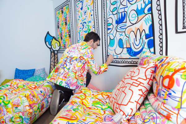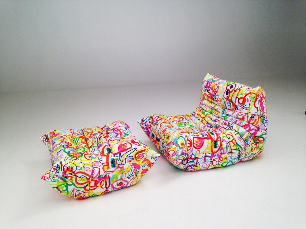 Ligne Roset, sanatçıyla “Comics” adında yeni bir kumaş serisi hazırlamak üzere bir araya geldi. Kirkby Design x Jon Burgerman imzasını taşıyan kumaşların üzeri sanatçının graffiti tarzı çizimleriyle renklenmiş.