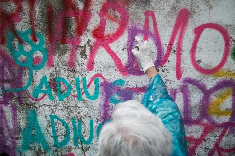 Fazlaca boş vakti, yeni bir şeyler öğrenmek için isteği olan ve yaşları 59’la 90 arası değişen büyükanneler, 2 gün boyunca graffiti tarihini, etiket atma tekniklerini, kendi şablonlarını (stencil) oluşturmayı, kesmeyi öğrendi ve kendilerine ait ilk başyapıtları Galeria de Arte Urbana’nın da katkılarıyla şehir meclisinin belirlediği duvarlara çizdi.