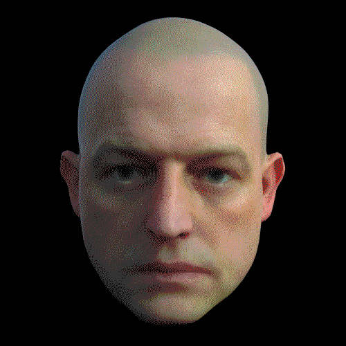 İnsan yüzü hakkında yıllarca süren bir keşfin sonucu ortaya çıkan ve Pizurnyi’nin çalışmalarında bir tuval gibi kullanılan 3B yüz modeli, TEN 24 3D Scan Store’dan alınmış.