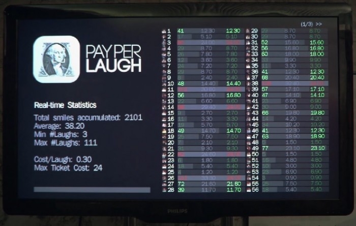 Şirket, bu fiyatlandırma biçimini Pay Per Laugh dedikleri ve izleyicinin şov boyunca ne kadar eğlendiğini ölçen ve kaydeden bir program yardımıyla gerçekleştirirken sistem, izleyicilerin koltuklarına monte edilen ve FaceTracker (yüz tanıma) teknolojisi yüklenmiş tabletler sayesinde çalışıyor.
