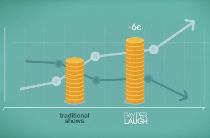 Teatreneu izleyicilere, performans boyunca sadece güldükleri kadarlık bilet fiyatı teklif ederek her bir izleyici için şovdan tam anlamıyla ödediği kadar keyif almasını sağlayan bir sistem kurdu.