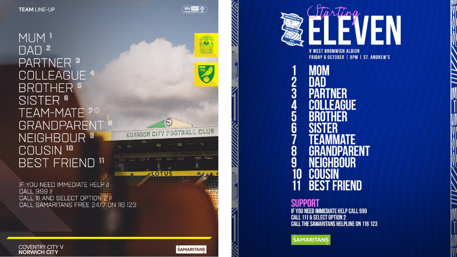 Kampanyanın tetikleyicilerinden biri Norwich FC taraftarıyla ilgili bir veri olmuş. Maçlara en sık bilet alan taraftarların yaş gurubu, ne yazık ki kendi canına kıyma riski en fazla olan erkeklerle aynıymış. Bir kamu spotu niteliğinde olan aşağıdaki greafikler de, İngiltere’de her hafta 125 kişinin intihar sonucu öldüğünü hatırlatıyor ve insanları kendilerinin veya çevrelerindeki birinin yardıma ihtiyacı olması durumunda ilgili numaraları aramaya teşvik ediyor.