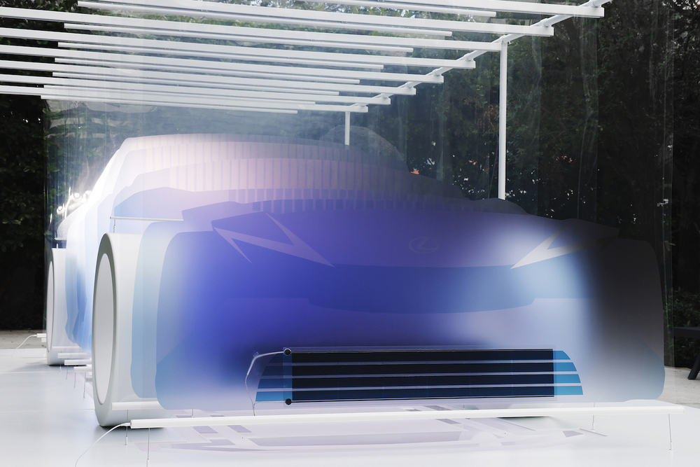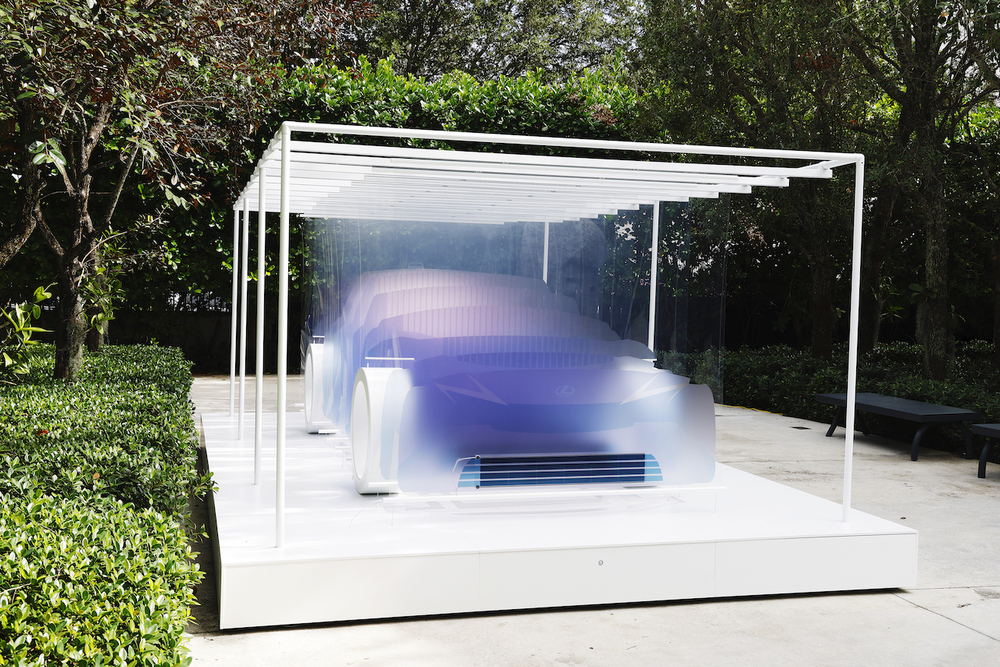 Bir hologramı andıran heykel, şirketin 2026’da piyasaya süreceği tam elektrikli sedan konsepti Lexus LF-ZC’yi (Geleceğin Sıfır Emisyon Katalizörü) tanıtıyor. Lexus LF-ZC, Marjan van Aubel‘in markalaşmış güneş paneli tasarımı aracılığıyla etkileşimli bir deneyim olarak yeniden canlandırılmış. Yerleştirme, van Aubel’in Miami’deki ilk halka açık projesi ve mekansal ve deneyimsel tasarımda uzmanlaşan Random Studio tarafından gerçekleştirilmiş.