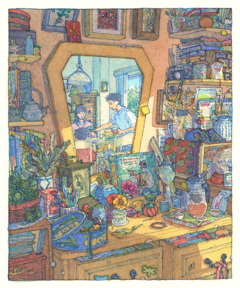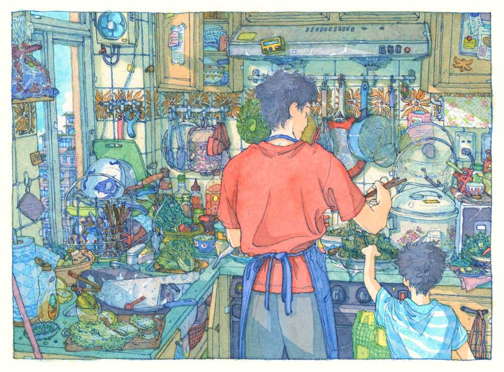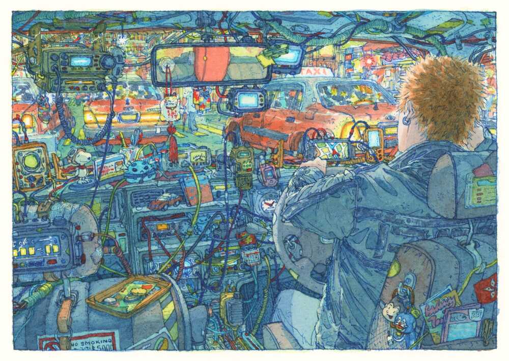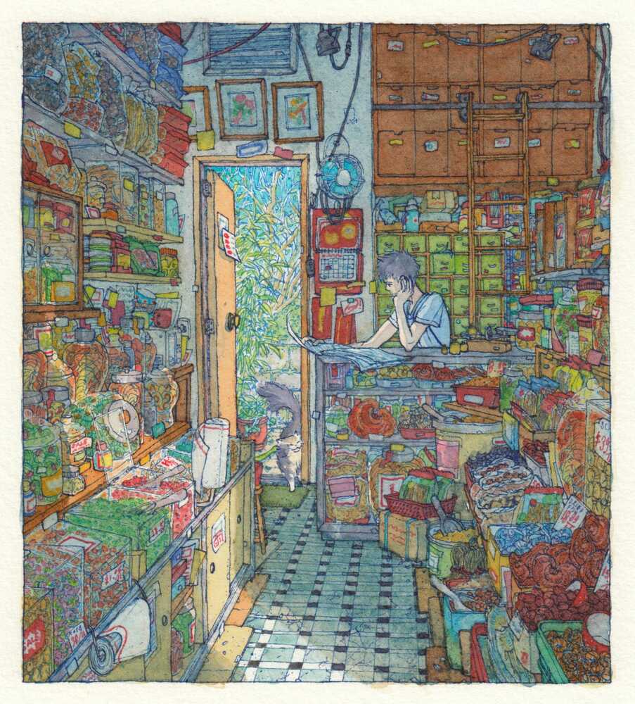 Rain Szeto, karmaşanın içindeki güzelliği ifade etmekte usta olan bir çizer. Tepeden tırnağa detaylarla bezeli dükkanlar, çalışma odaları, mutfaklar, yemek odaları, balkonlar, bahçeler, müzik stüdyoları, oyun mekanları ve fütürist bir havaya sahip iç mekanlar yaratıyor. Daha önceden çalışmalarına şurada yer vermiştik. Szeto o kadar üretken bir sanatçı ki o günden bugüne karmaşıklığın dozunu artırarak çok daha ustaca işler çıkarmaya devam etmiş.