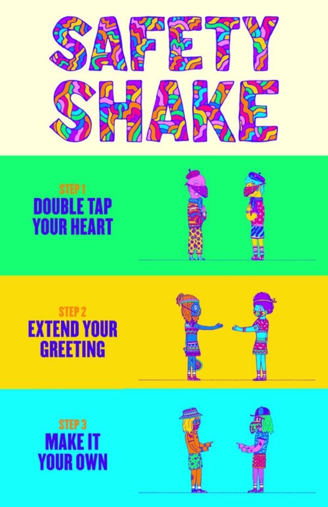 Sanatçı ve İllüstratör Young & Sick, sosyal medya platformu Triller ve Curtis Roach ile yapılan iş birliği sonucu kendisi de iki çocuk babası olan Mekanism CEO’su Jason Harris böyle bir kampanyanın temellerini atıyor. Safety Shake sosyal mesafeyi korumaya teşvik eden yaratıcı ve özel selamları tanıtıyor.