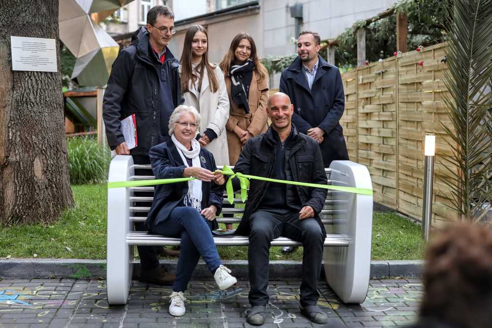 Polonya’daki banklar yeşil ve gri renkte boyanmış. Üzerlerinde “birinin merhaba demek için durmasına aldırmazsanız buraya oturun!” yazan levhalar yer alıyor. Metinler üç farklı dilde (İbranice, Lehçe ve İngilizce) yazılmış.