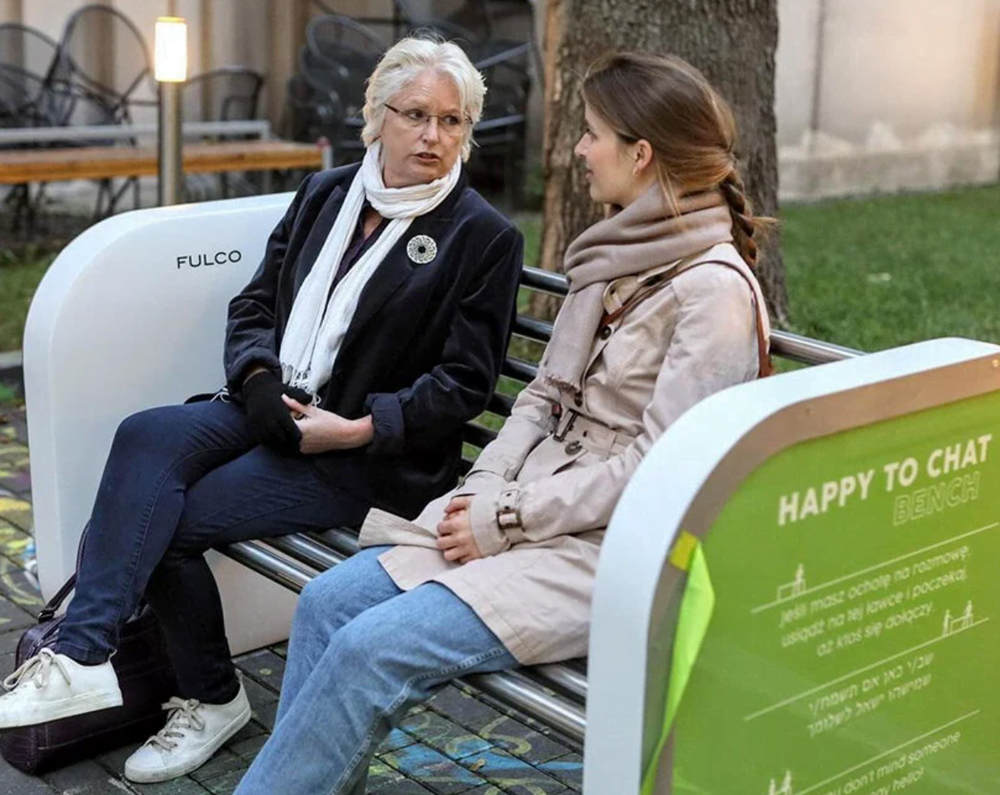 Polonya’nın Krakov şehri, bu durumla mücadele etmek için bireyleri oturup birbirleriyle sohbet etmeye teşvik eden bir proje üretmeye karar vermişler. Bu iş için Polonyalı organizasyon Gadulawka ile çalışılmış. Gadulawka da uygulama sırasında yerel bir mimarlık stüdyosuyla iş birliği yapmış. Böylece yoldan geçenlerin dikkatini çeken parlak yeşil renklere sahip sade ve davetkar sohbet bankları olan Happy to Chat noktaları, Polonya sokaklarındaki yerini almış.