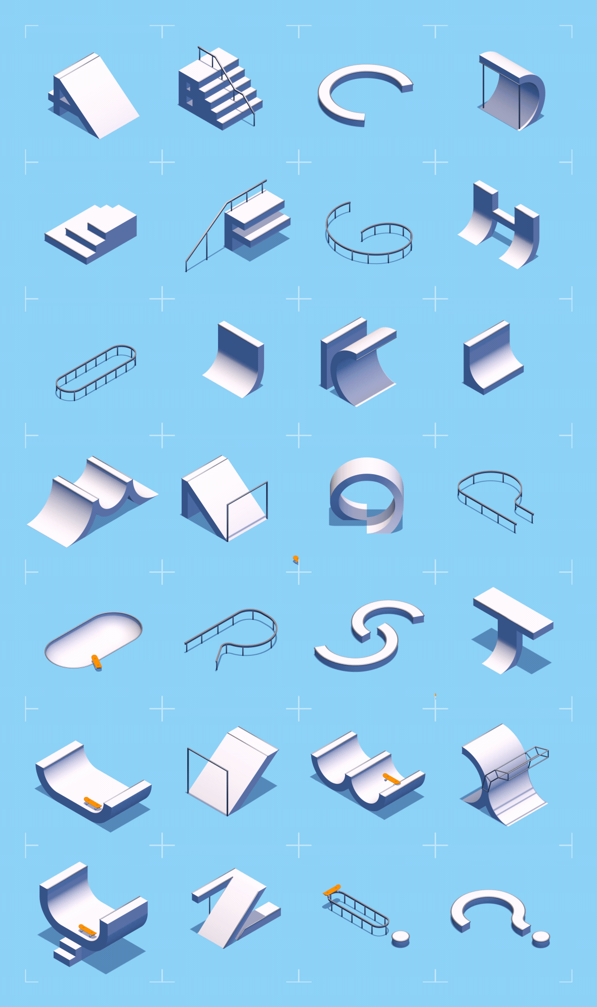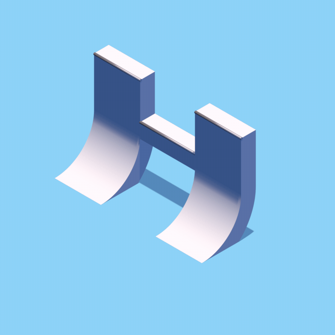 Japon tasarımcı Keisuke Terashima ise kaykay parklarına farklı bir açıyla bakıyor ve buradaki öğelerle tipografiyi buluşturarak alfabeyi baştan sona yazıyor. Terashima rampalar, borular, çukurlar ve niceleriyle alfabeyi daha önce görmediğimiz bir şekilde görmemizi sağlıyor. Alfabeyle GIF’i buluşturan bir başka işte ise, Almanya merkezli yaratıcı ajans Deepblue Networks ise ismindeki harfleri mimari GIF’lere dönüştürmüştü.