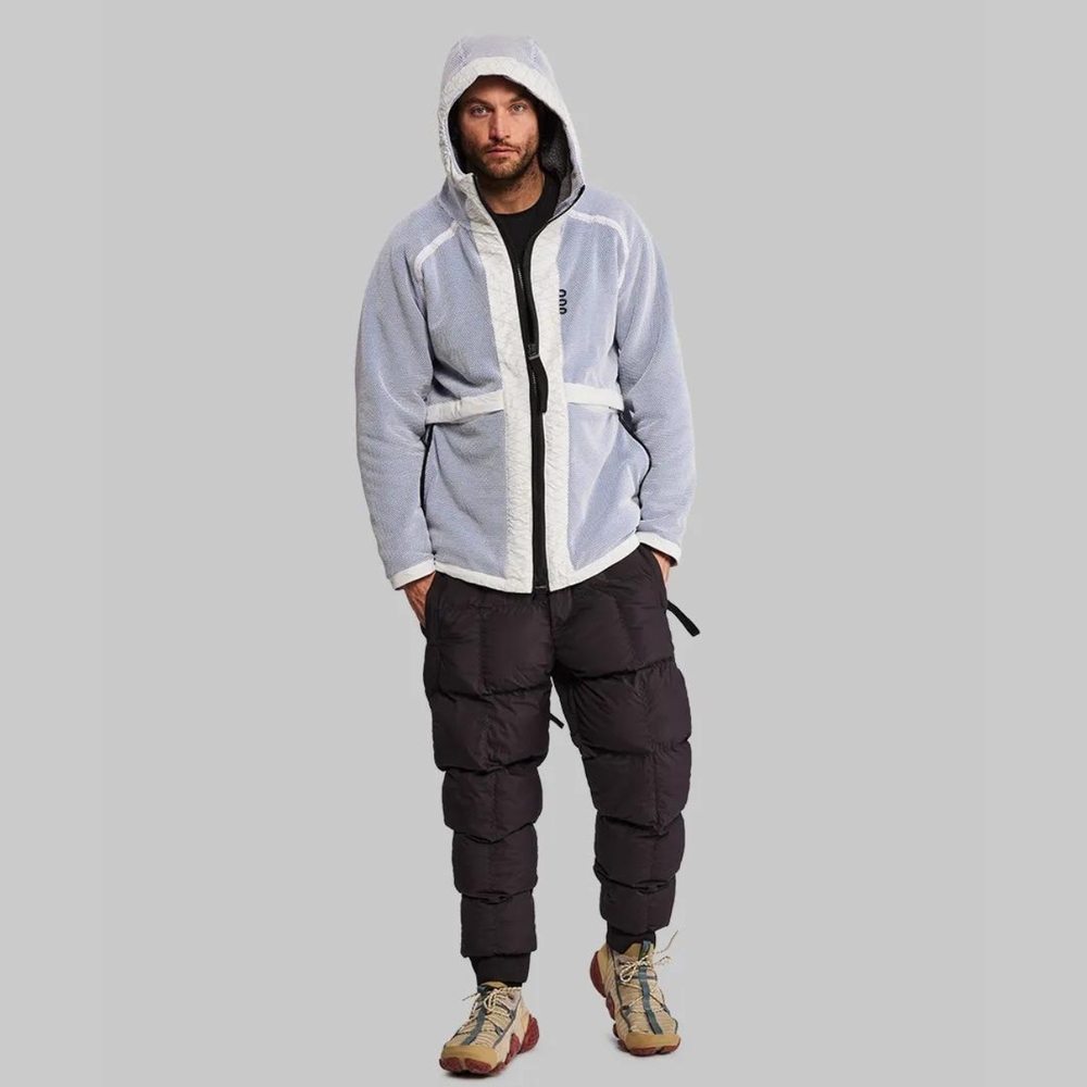 Almanya’da üretilen ana dış malzeme; %60 Dyneema, %35 polyester, %5 elastan içeriyor. İtalya’da yapılan ikinci dış malzeme ise %100 poliamid. Polartec tarafından ABD’de üretilen astar ise %74’ü geri dönüştürülmüş tamamen polyester bir katman. Dış gövde aşınmaya karşı oldukça dayanıklı. Öyle ki dış gövde 45 km/s hızla düşmeye/darbeye dayanabiliyor ve bu hızla beton üzerinde sürüklense bile işlevini koruyor. Giysinin ağırlığı 1.350 gram ve makinede, 30°C derecede yıkanabiliyor.