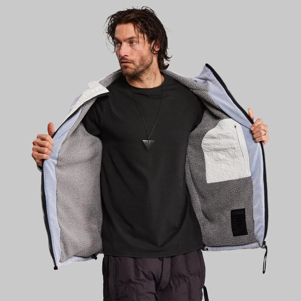 Vollebak, Titan Fleece Jacket ile kriyojenik soğuklarda (örneğin -179°C derecede) dahi kullanıcıyı sıcak tutmayı vadediyor. Kriyojeni, çok düşük sıcaklıklarda yapılan üretim ve işlemler için kullanılan bir fizik terimi. Titan Fleece, kullanıcıyı sadece soğuktan korumakla kalmayıp, aynı zamanda sıradan giysilerin hasar göreceği bazı koşullardan da etkilenmeyen güçlü bir yapıya sahip. Örneğin sıcak tuttuğu ve rahat olduğu için tercih edilen polar giysilerin yırtılması ve parçalanması oldukça kolay. Titan Fleece ise yüksek mukavemetli naylondan yapılmış, su geçirmez, hafif ve üç katmanlı bir malzemeyle güçlendirilmiş. Bu malzemelerin içinde en çok dikkat çekeni de Dyneema.