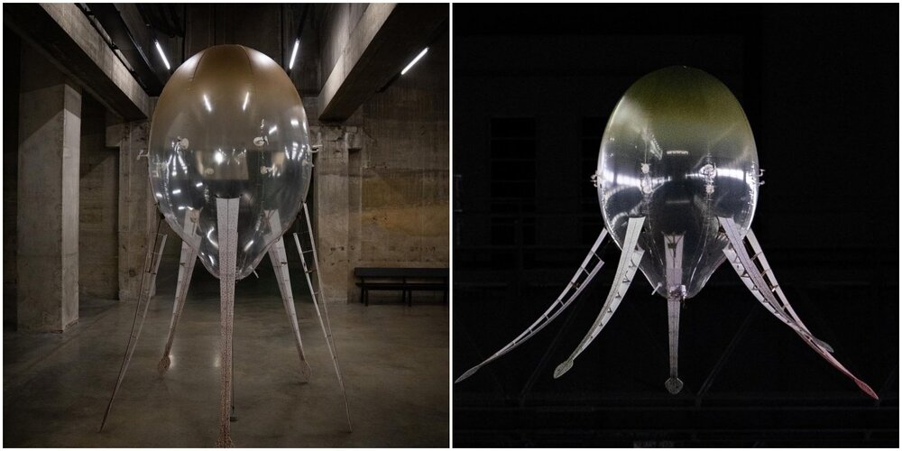 Sanatçı, bu makineleri “aerob” olarak adlandırıyor. Formları okyanuslardaki yaşam formlarına dayanan bu yaratımlarda tüylü deniz canlılarını, ahtapotları ve mantarları anımsatan helyum dolu küreler havada eşsiz bir şekilde süzülüyor.