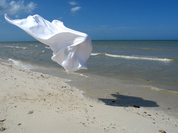 Bazı fotoğraflarda havadaki kumaşların içlerinde insan olduğu az çok belli olsa da, yaratılan görsel illüzyon sayesinde kumaşlar rüzgarla havada uçuşuyormuş gibi yarı sürreal bir görüntü ve duygu yakalıyor. Kumaşların renkleri ise içinde bulundukları ortamın doğal renk dokusu içinde öne çıkacak şekilde seçilmiş.