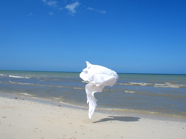 Fotoğraflardaki havada uçuşan kumaşların görüntüsü sizin de aklınıza Amerikan Güzeli filmindeki şu ünlü sahneyi getirmedi mi?