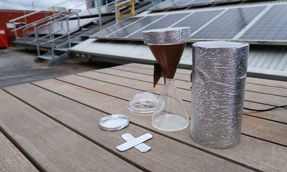 RMIT Üniversitesi‘nden (Melbourne) kıdemli araştırmacı Dr. Derek Hao; bu buluşun, rafine edilmiş balsa ağacının doğal süngerimsi yapısına dayandığını belirtiyor. Bu ağaç, atmosferden su emmek ve serbest bırakmak üzere doğal olarak süngerimsi bir yapıya sahip. Araştırma ekibinin geliştirdiği ahşap bazlı kompozit; kubbe kapaklı ve kirliliği önleyici tepsili bir bardağa, ayrıca bir soğutma mekanizması ve güneş enerjisiyle çalışan bir etkinleştirme sistemine tam olarak oturacak şekilde tasarlanmış. Süngerimsi malzemenin içine konulduğu bu düzeneğin fotoğrafını, aşağıda görebilirsiniz.